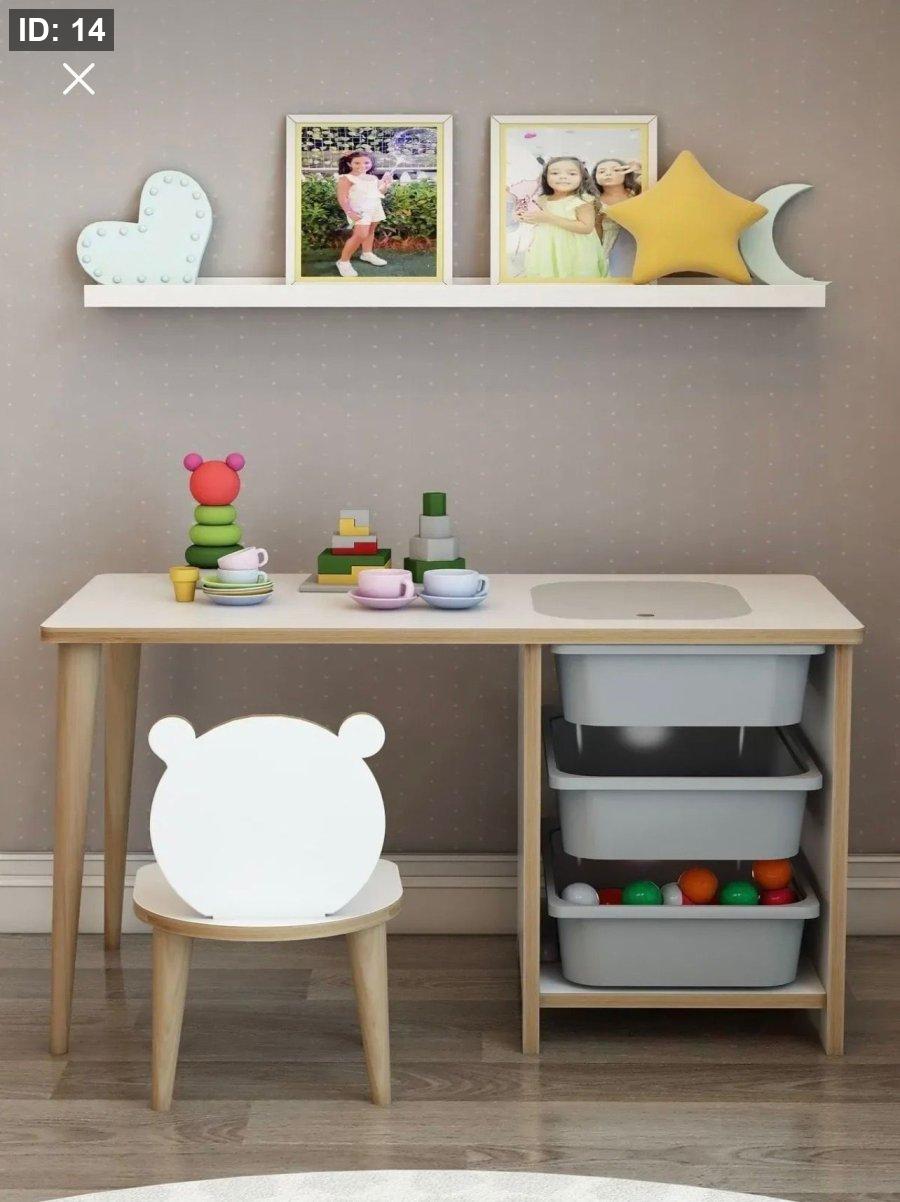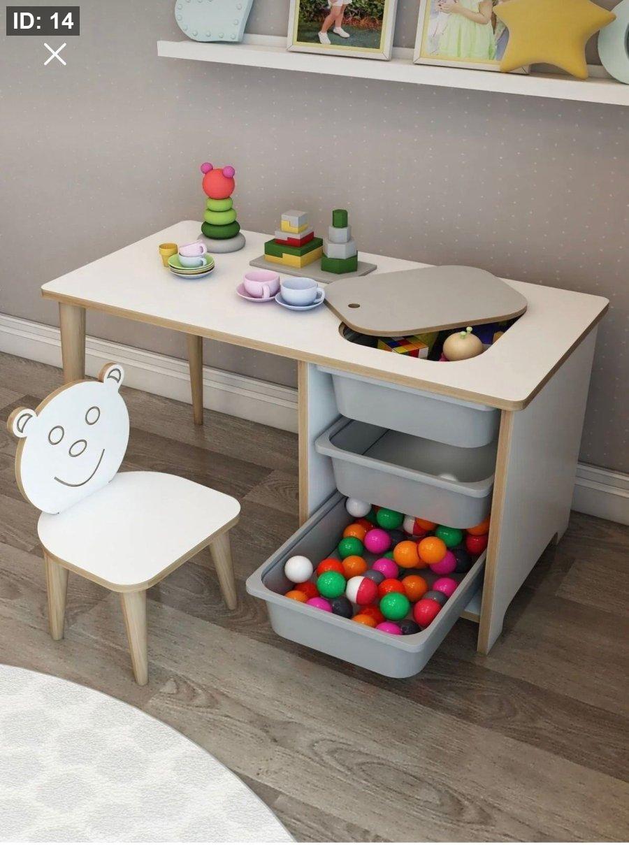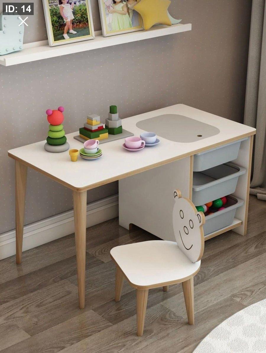 طاوله تفاعليه مع صناديق بلاستيكيه جانبيه مع كرسي